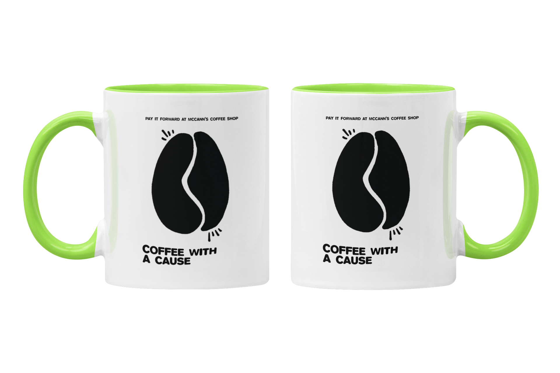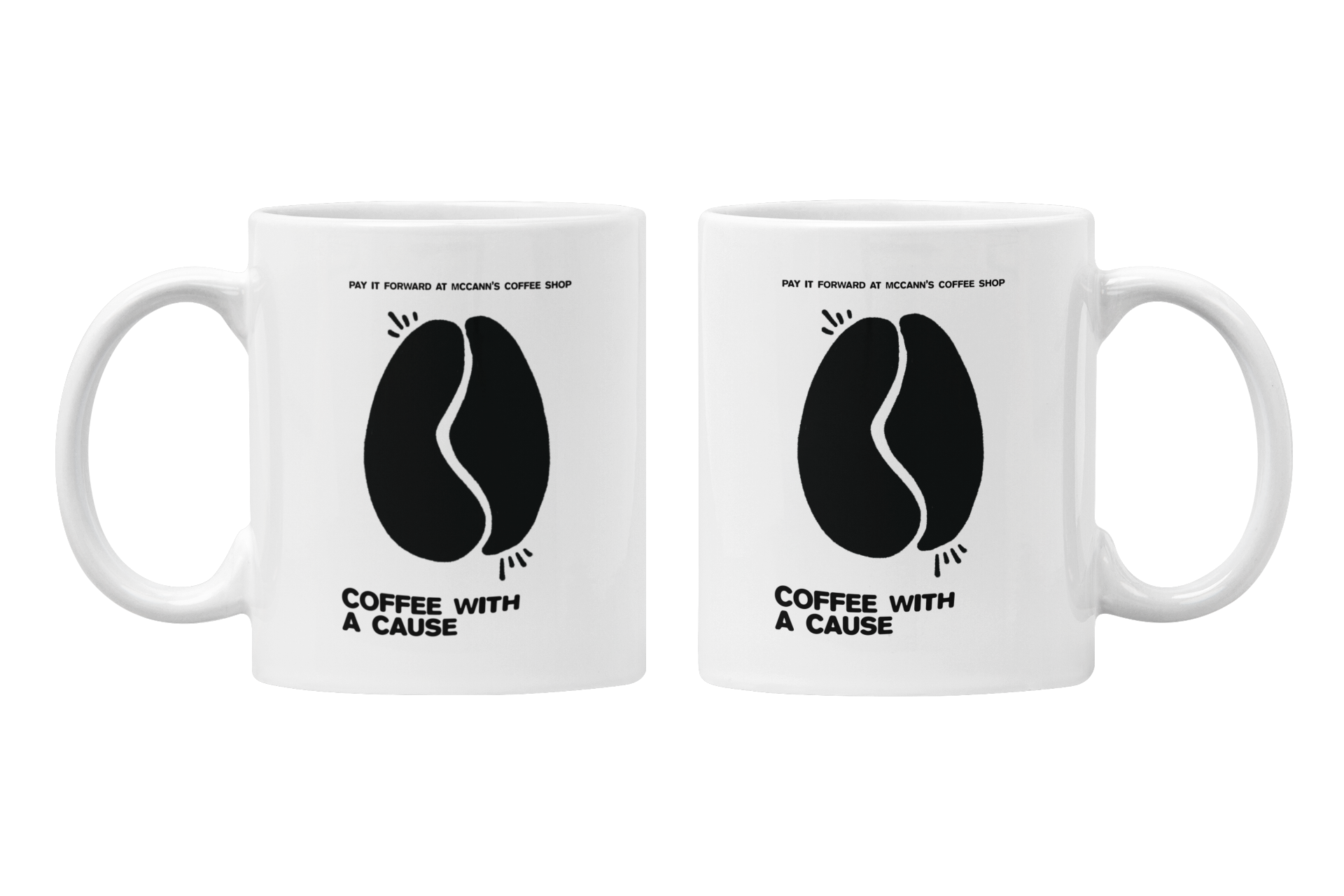 Get your day started on the right foot with the "Meals with Max - Coffee Bean" Mug. This coffee mug features a sketch of a coffee bean for McCann's coffee shop in Newbury. It's the perfect addition to your morning routine or a great gift for any coffee lover!